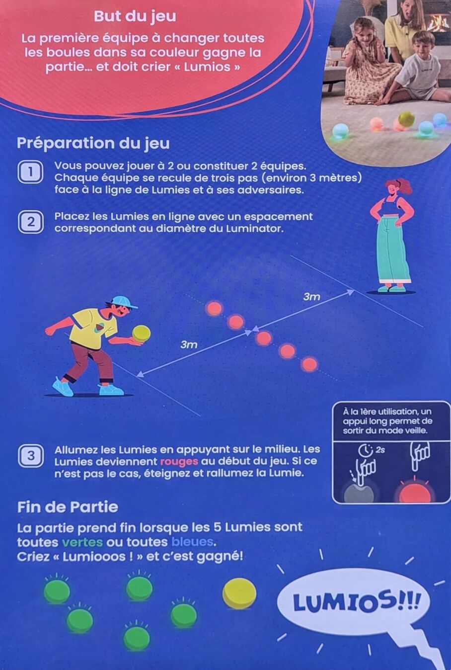 Lumios séduit immédiatement par son côté spectaculaire. Mise en place rapide, règles expliquées en quelques secondes, et parties qui s’enchaînent naturellement : les enfants adoreront viser et lancer, et les adultes se prendront très vite au jeu, eux aussi ! Lumios est un jeu familial idéal pour partager un moment de compétition joyeuse, développer la coordination et vivre une expérience originale, accessible et pleine d’énergie.