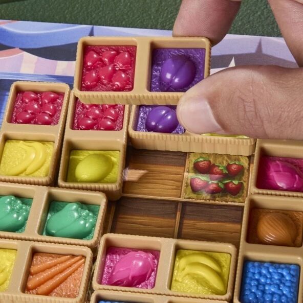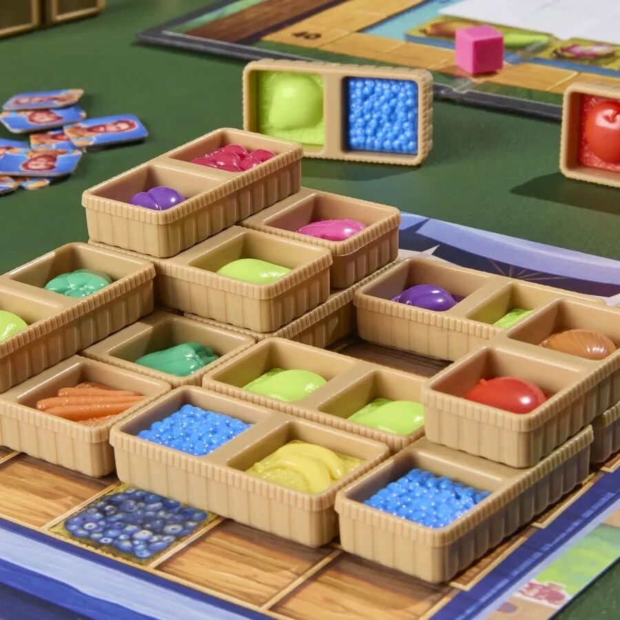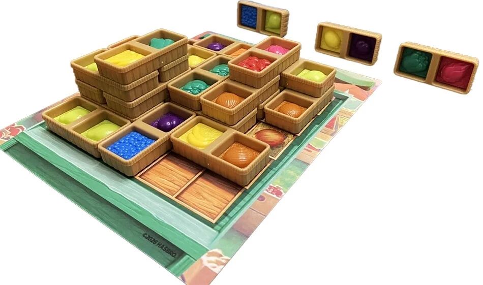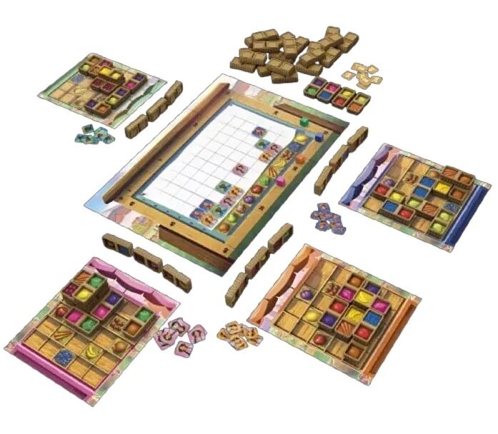 Le principe est simple : une réserve centrale présente les produits disponibles. À votre tour, vous sélectionnez une caisse de produits puis vous l'ajoutez à votre réserve personnelle. Ce choix modifie immédiatement les options restantes pour les autres joueurs. Alors, faut-il prendre immédiatement la caisse dont vous avez besoin pour compléter une combinaison, ou patienter au risque qu’un adversaire vous la subtilise ? À vous de voir !