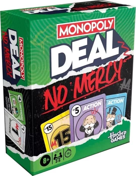 Le jeu Monopoly Deal No Mercy reprend les bases de Monopoly Deal et les propulse dans une version bien plus incisive et sans concession. L’objectif reste simple : constituer des groupes de propriétés pour l’emporter. Mais ici, chaque tour devient une lutte d’influence où tous les coups sont permis.