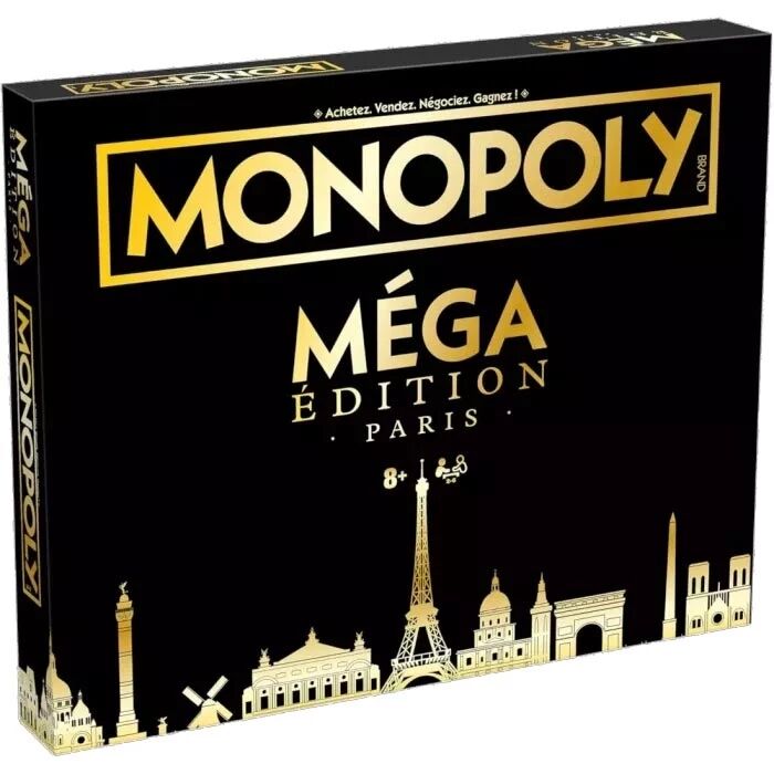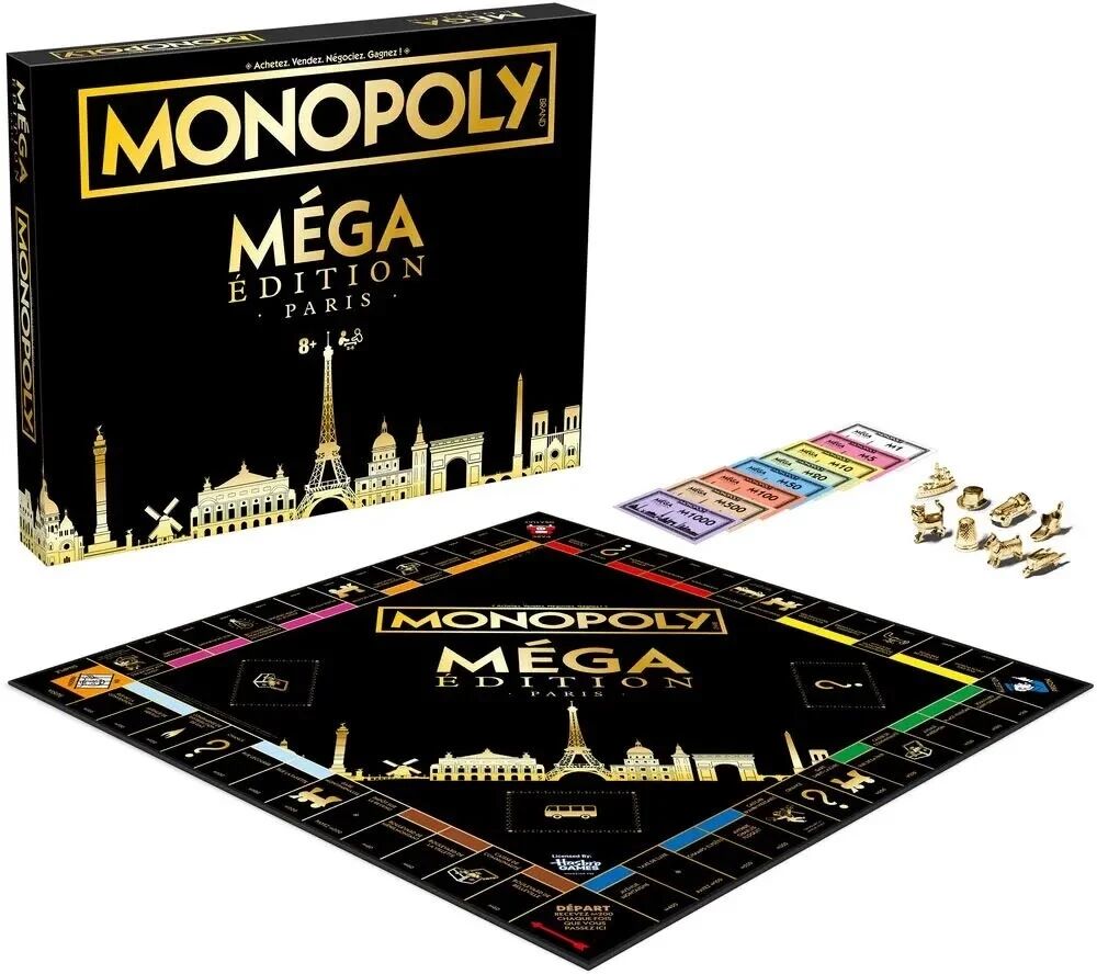 Dans ce Monopoly Méga Édition Paris, le plateau géant contient 12 cases supplémentaires, dont 9 nouveaux titres de propriété.
