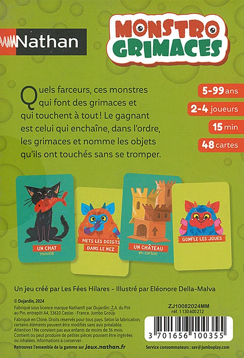Monstro Grimaces est un excellent jeu d’ambiance pour développer la mémoire, l’observation et la confiance en soi… tout en s’amusant à faire les pires grimaces possibles !