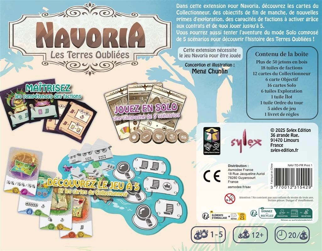 Dans Les Terres Oubliées, vous découvrirez les mystérieuses cartes du Collectionneur, de nouveaux objectifs de manche et des primes d’exploration inédites. Les factions gagnent en profondeur avec des compétences spécifiques activées par les contrats, permettant d’adapter encore plus finement votre stratégie. Chaque partie est dynamisée par des tuiles Exploration et des cartes Objectif variées, qui assurent des mises en place renouvelées et des défis tactiques toujours différents.