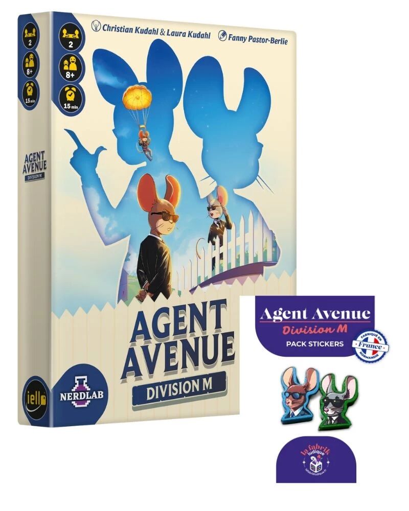 Le Pack Agent Avenue : Division M vous propose l'extension Division M pour enrichir le jeu de base et ajouter de nouvelles mécaniques, mais aussi son pack de stickers pour pimper votre extension.