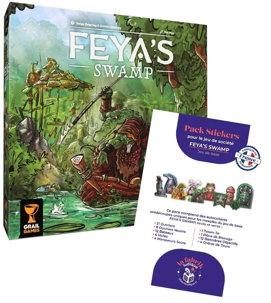 Avec le Pack Feya's Swamp, retrouvez le jeu Feya's Swamp et le Pack de Stickers pour habiller vos meeples.