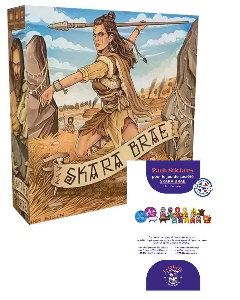 Le Pack Skara Brae contient le jeu de base et ses stickers. Grâce à ce pack, bâtissez le plus prospère des villages sur les terres balayées par les vents du nord de l’Écosse et embellissez parties avec les stickers.