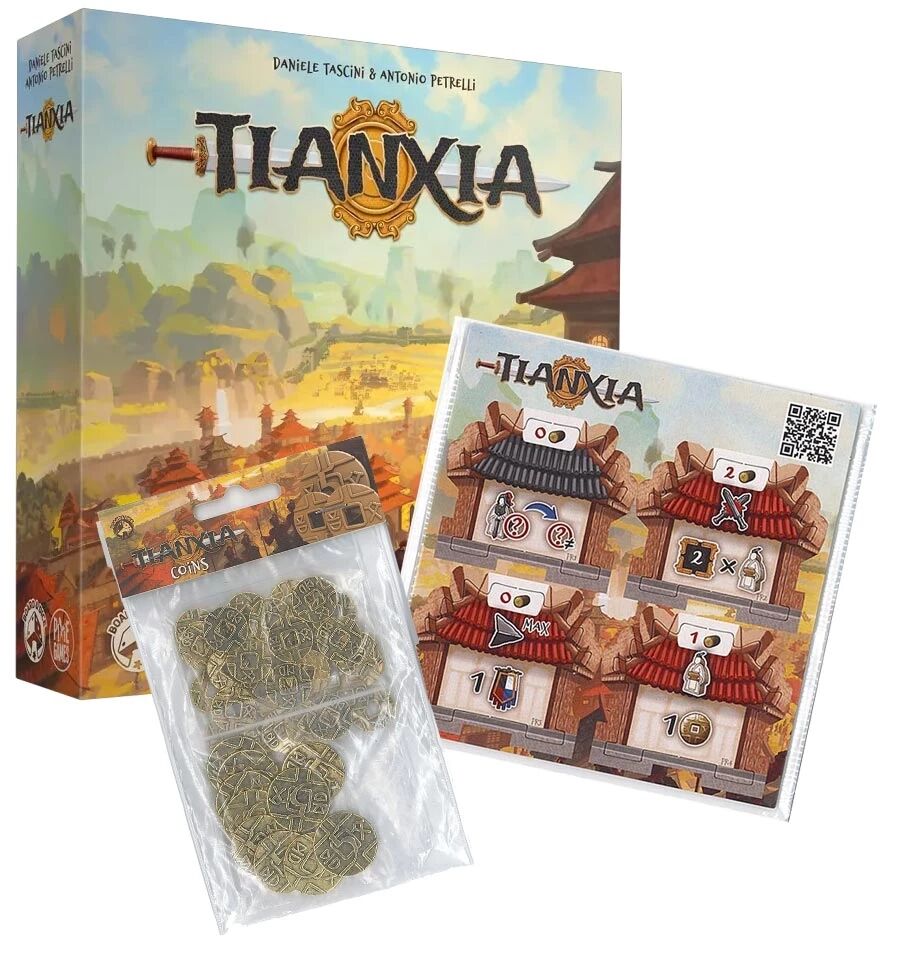 Avec ce Pack Tianxia, retrouvez le jeu de base Tianxia + les pièces métal dédiées + le set de 4 Tuiles Nouveaux Bâtiments proposées par l'éditeur Board & Dice.