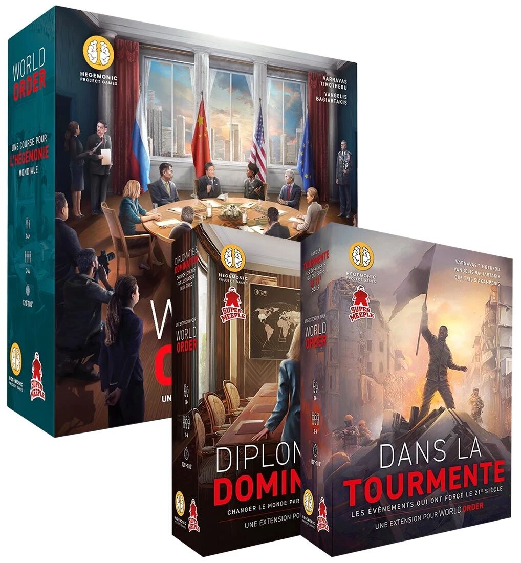 Le Pack Complet World Order réunit le jeu de base World Order et ses deux extensions majeures Dans la tourmente et Diplomatie & Domination pour une expérience stratégique totale de 2 à 4 joueurs. Vous incarnez une grande puissance mondiale dans un monde instable et en constante mutation.
