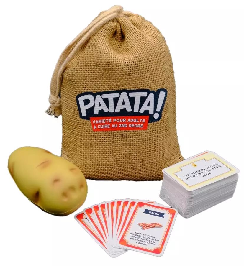 Le jeu Patata, revisite le principe de cette bonne vieille patate chaude. Un jeu d’ambiance pour briser la glace, oser vous dire des trucs que vous n’auriez jamais cru et découvrir des facettes de votre entourage que vous n’auriez jamais imaginées.
