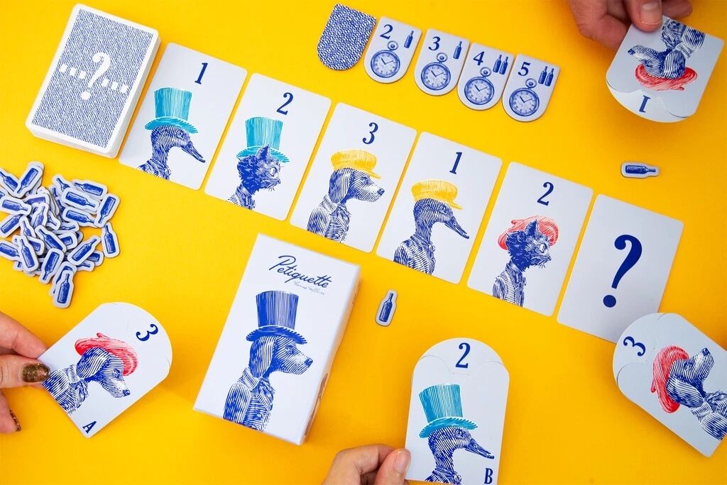 Dans le jeu Petiquette, tout est une question de logique… ou plutôt de perception de la logique ! Face à vous, une rangée de cartes représentant différents animaux, chapeaux et valeurs numériques. Une carte manque à l’appel. Quelle est celle qui rendrait cet ensemble “cohérent” ?