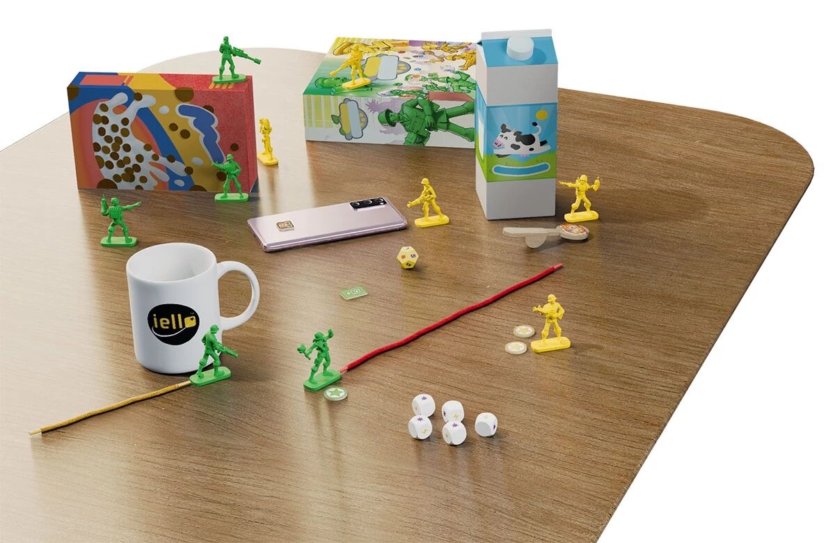 Dans le jeu Petits Soldats, votre cuisine, salon ou salle à manger se transforme en terrain militaire. Chaque joueur contrôle une escouade de soldats miniatures prêts à en découdre au milieu des verres, assiettes, carafes et beurriers.