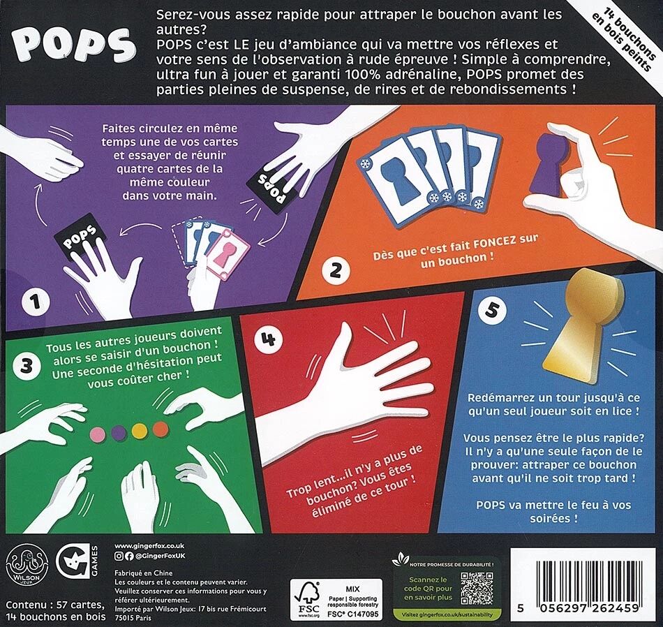 Simple à comprendre, ultra fun à jouer et garanti 100% adrénaline, Pops promet des parties pleines de suspense, de rires et de rebondissements !