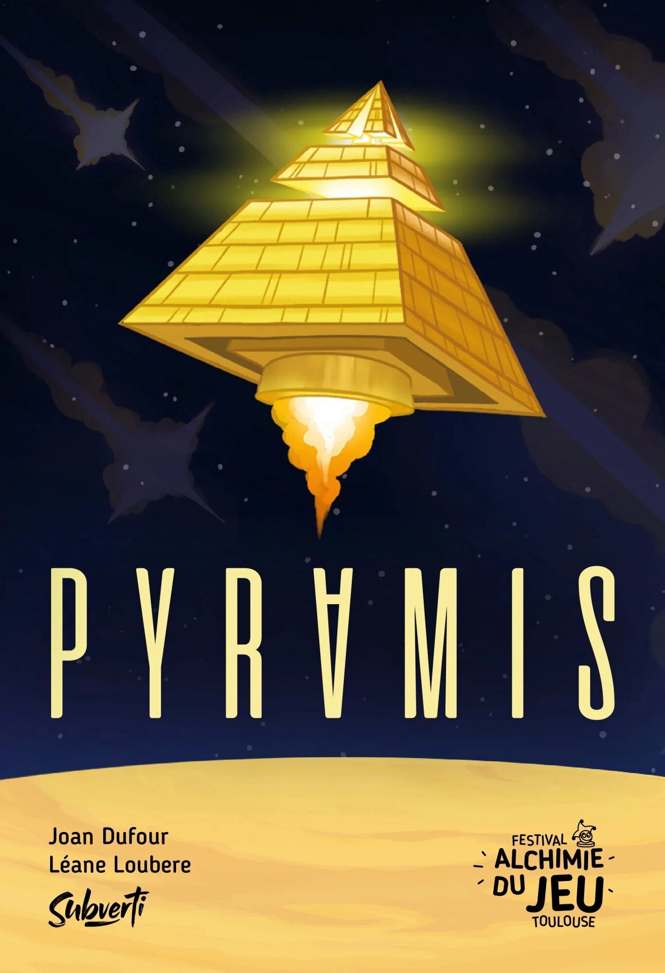 Dans le jeu Pyramis, vous incarnez une civilisation alien contrainte de fuir sa planète après en avoir exploité toutes les ressources. Pour assurer la survie de votre peuple, vous devez constituer la flotte la plus impressionnante possible en assemblant des pyramides-fusées et en recrutant des aliens, le tout avant la fin du grand exode spatial.