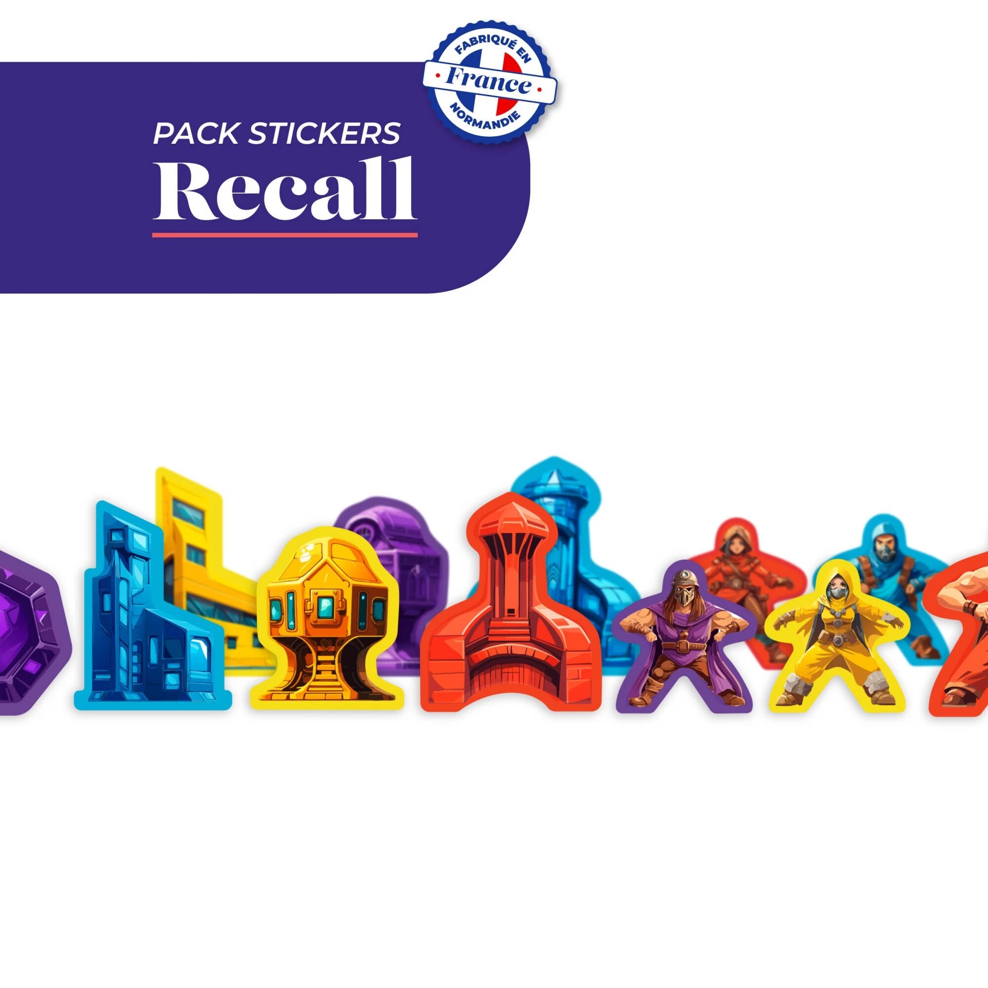 Ajoutez du style et de la lisibilité à vos parties de Recall grâce à ce pack de stickers conçu pour le jeu ! Chaque autocollant vient embellir les pions en bois pour une immersion renforcée.