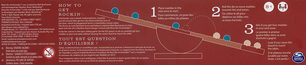 À chaque tour, soit on place une bille de sa réserve dans une encoche libre de la zone centrale, soit on lance le dé pour déplacer une ou plusieurs de ses billes en fonction du chiffre obtenu. Si à un moment la balance se déséquilibre et touche la table, le joueur responsable a perdu ! Les règles sont simples et rapides à comprendre, ce qui contribue à la profondeur stratégique du jeu.