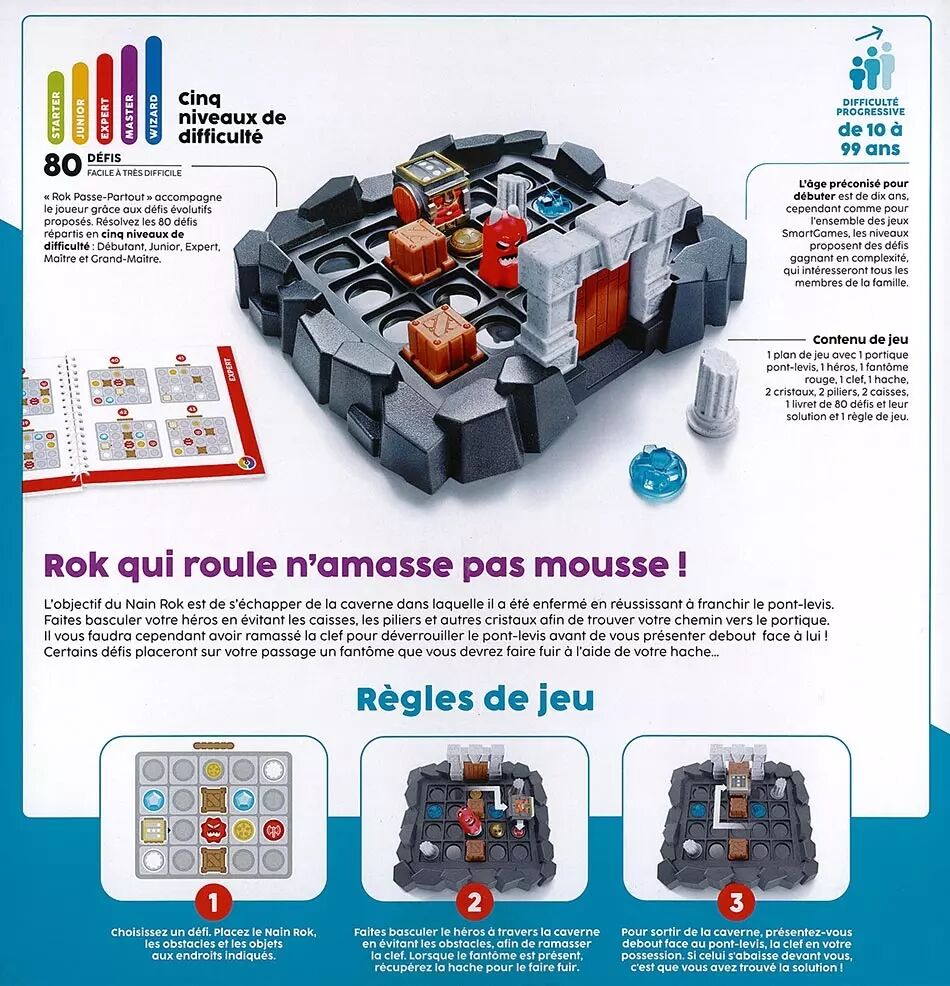 Dans le jeu Rok Passe Partout, l’objectif du Nain Rok est de s’échapper de la caverne dans laquelle il a été enfermé en réussissant à franchir le pont-levis.