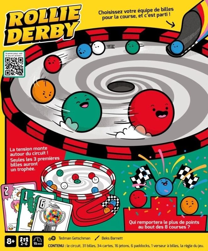 Le jeu Rollie Derby transforme une simple course de billes en une compétition féroce. Accessible et dynamique, le jeu propose une expérience originale mêlant prise de risque, anticipation et manipulation. Le cœur du jeu repose sur une mécanique simple : chaque joueur choisit secrètement combien de billes il souhaite lancer sur le circuit. Ce choix est déterminant, car seules les trois premières billes à atteindre le podium rapportent des points sous forme de cartes Trophée.