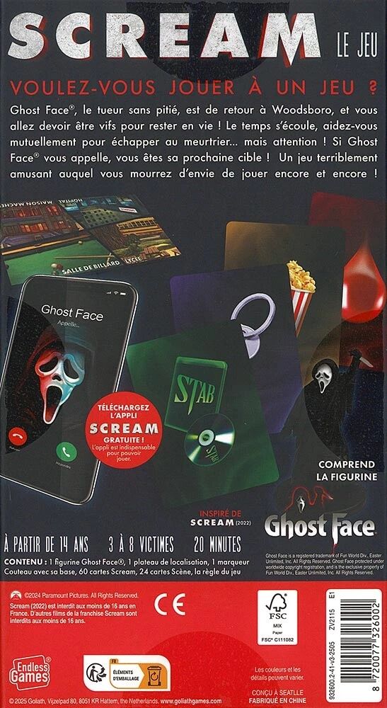 Avec ce jeu d’ambiance coopératif en temps réel, Ghost Face® est de retour à Woodsboro, plus sadique et imprévisible que jamais.