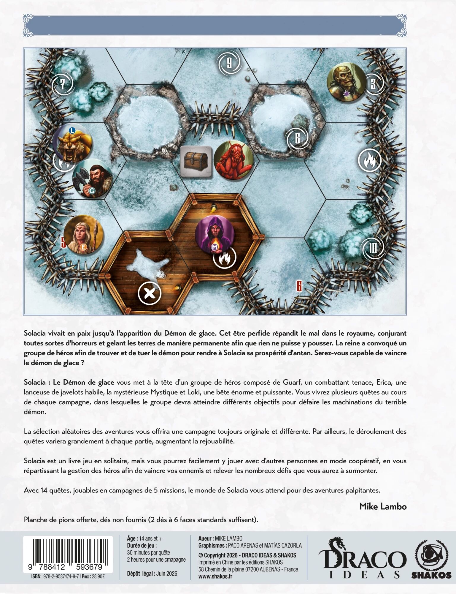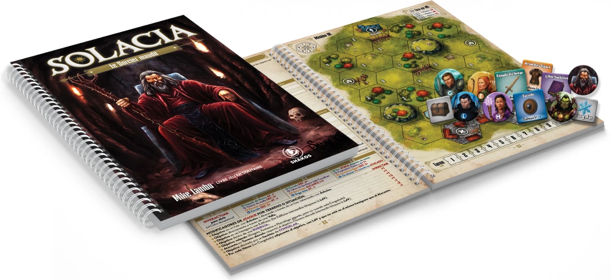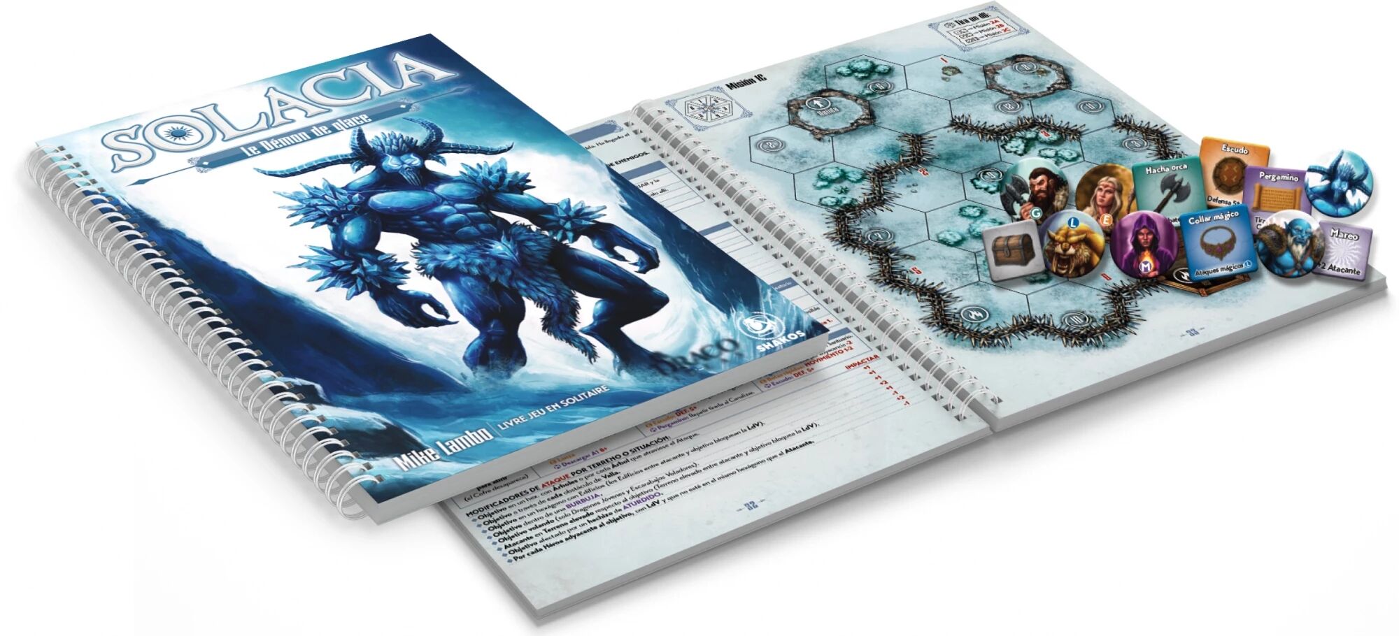 1 Livre-Jeu Solacia : Le Démon de Glace, 1 Livre-Jeu Solacia : Le Sorcier Maudit, une boîte de rangement Collector.