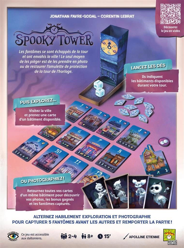 Dans le jeu Spooky Tower, les fantômes se sont échappés de la mystérieuse Spooky Tower et envahissent la ville ! Pour les capturer, une seule solution : explorer les bons bâtiments, prendre les clichés au bon moment et restaurer l’amulette de protection avant vos adversaires.