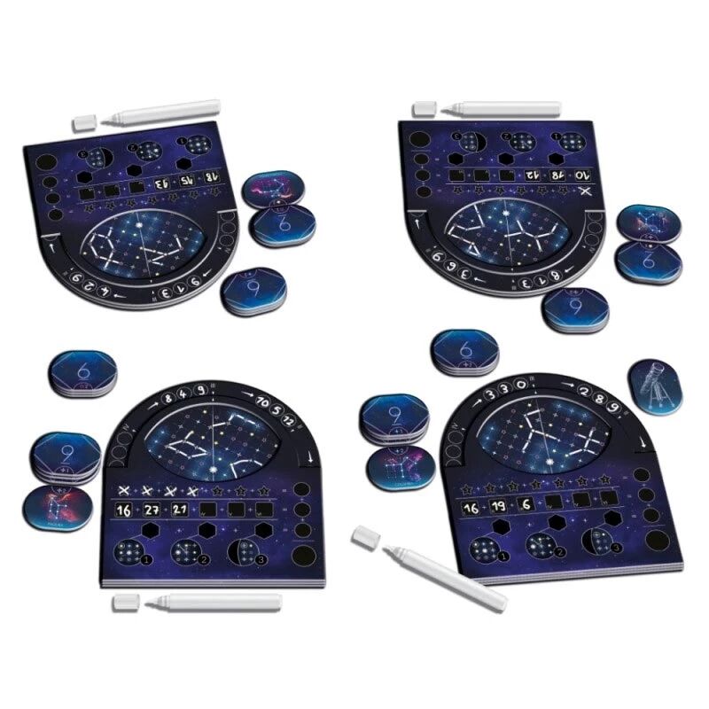 Dans le jeu Star Explorer, les joueurs vivent une véritable aventure astrale. Armés de leurs plateaux personnels représentant une portion du ciel, ils font tourner leur carte rotative pour révéler des constellations cachées. À chaque tour, ils choisissent une constellation à reproduire, qu’ils devront marquer sur leur propre carte en respectant les étoiles et leur position. Plus la constellation est correctement placée, plus elle rapporte de points. La précision d’observation et la bonne gestion de l’espace deviennent les clés du succès.