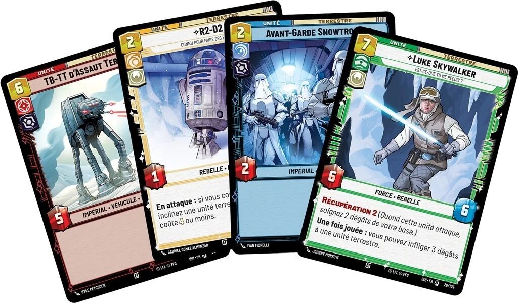 Dans Bataille d’Intro – Hoth, deux decks préconstruits « prêts à jouer » vous permettent d’incarner soit Dark Vador à la tête de l’armée impériale, soit Leia Organa menant les forces Rebelles. Votre objectif : protéger votre base tout en détruisant celle de votre adversaire.