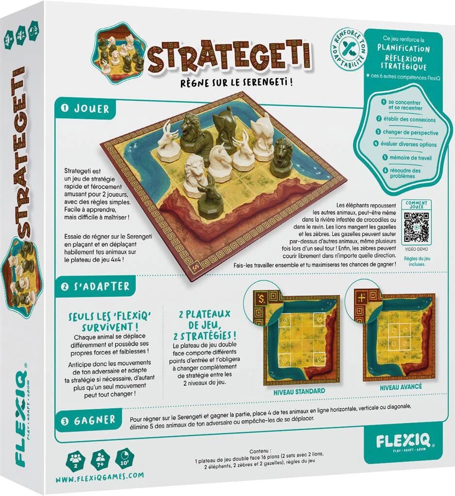 Strategeti propose un plateau de jeu recto-verso, offrant deux niveaux de difficulté. Le niveau standard permet de découvrir les mécaniques en douceur, tandis que le niveau avancé modifie les points d’entrée de vos animaux et renouvelle profondément les stratégies possibles, garantissant une excellente rejouabilité.