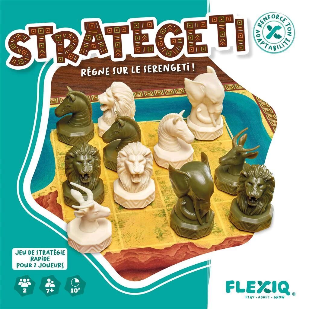 Dans le jeu Strategeti, les joueurs s’affrontent dans un duel tactique intense au cœur du Serengeti, à l'aide d'animaux emblématiques aux comportements très différents. Chaque joueur dispose de quatre types d’animaux — lions, éléphants, zèbres et gazelles — et chacun possède ses propres règles de déplacement, ses forces spécifiques et ses contraintes. Cette asymétrie est au centre de l’expérience de jeu.