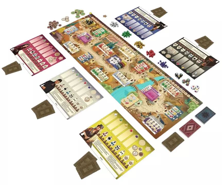 À chaque tour, déplacez habilement l'un de vos trois apprentis à travers le Grand Bazar. Explorez les échoppes, faites du troc chez les marchands ou aventurez-vous dans des ruelles plus sombres pour compléter vos recherches de matériaux comme la laine, le poil de chameau, la soie ou les teintures. Chacun de vos apprentis a une portée limitée : planifiez stratégiquement chacun de vos déplacements pour obtenir les ressources nécessaires avant vos adversaires et remplir vos commandes pour progresser dans le jeu.