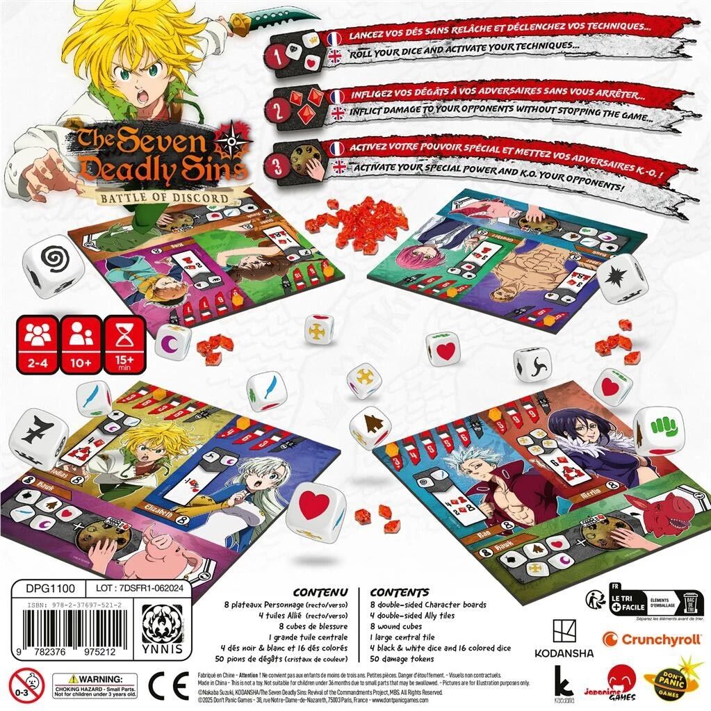 The Seven Deadly Sins : Battle of Discord est un jeu de dés et d'affrontement pour 2 à 4 joueurs. Dans ce jeu de société, tout le monde joue en même temps. Il faudra être le dernier personnage debout.