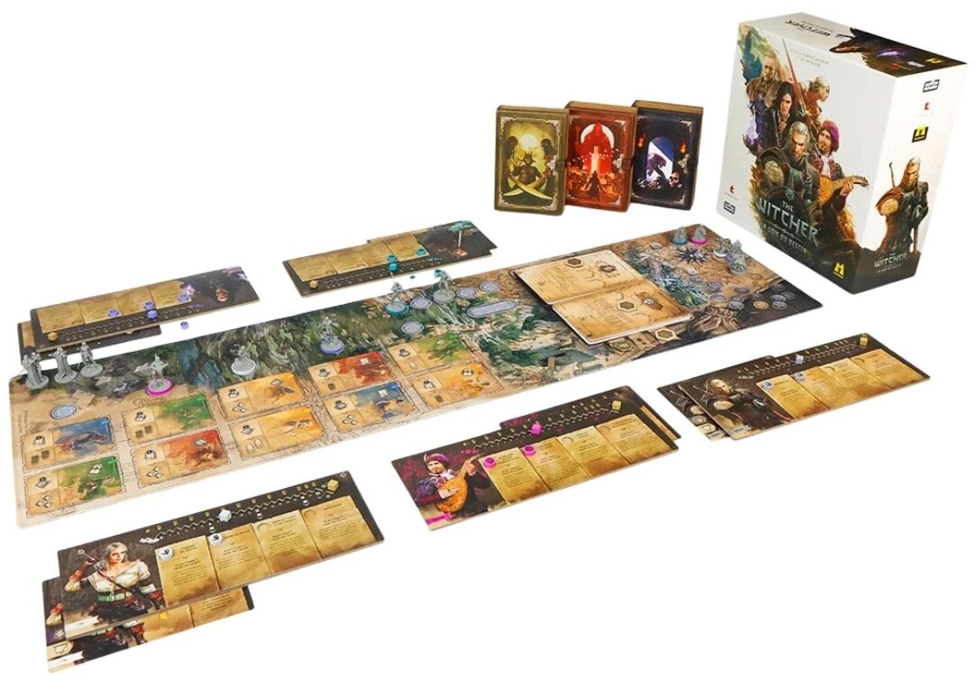 Cette Édition Deluxe du jeu The Witcher : La Voie du Destin remplace les jetons de personnages par des figurines détaillées, en plus d'ajouter d’autres composants premium.