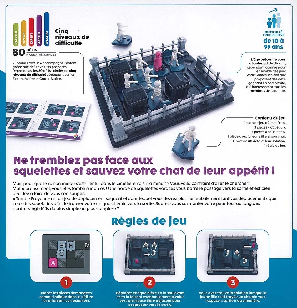 décidée à faire de vous son souper… « Tombe Frayeur » est un jeu de déplacement séquentiel dans lequel vous devrez planifier subtilement tant vos déplacements que ceux des squelettes afin de trouver votre unique chemin vers la sortie. Saurez-vous surmonter votre peur tout au long des