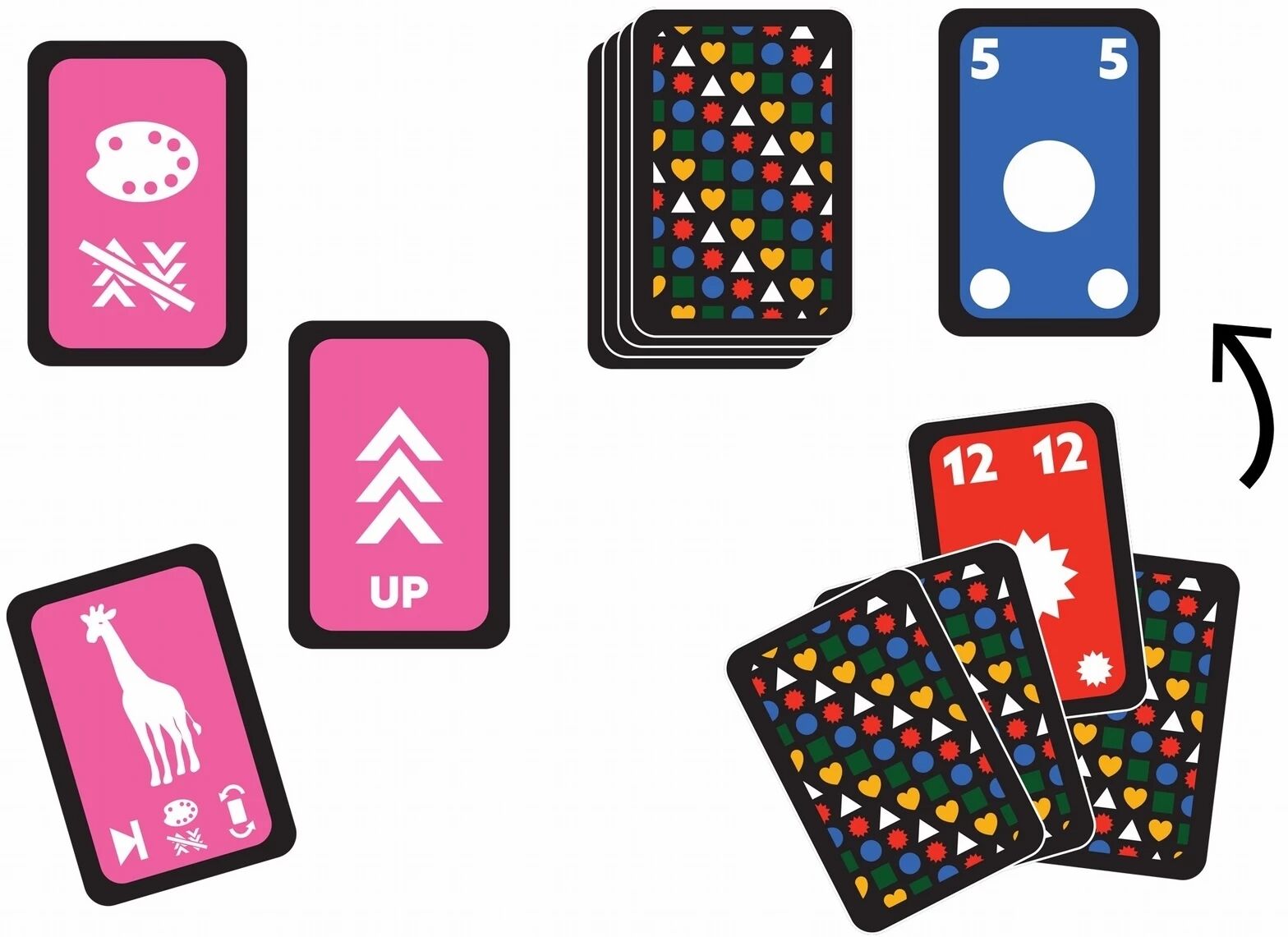 À votre tour, vous pouvez jouer une ou deux cartes en respectant le sens en cours. Des cartes Action viennent enrichir la partie : passer son tour, changer le sens ou jouer une carte selon sa couleur, même si elle ne respecte pas l’ordre en cours. Les cartes Joker offrent encore plus de flexibilité en combinant ces effets. Le sens peut également basculer automatiquement lorsque certaines cartes clés sont jouées, ajoutant des rebondissements imprévus. Plus vous augmentez la difficulté en réduisant le nombre de Jokers, plus le défi devient intense.