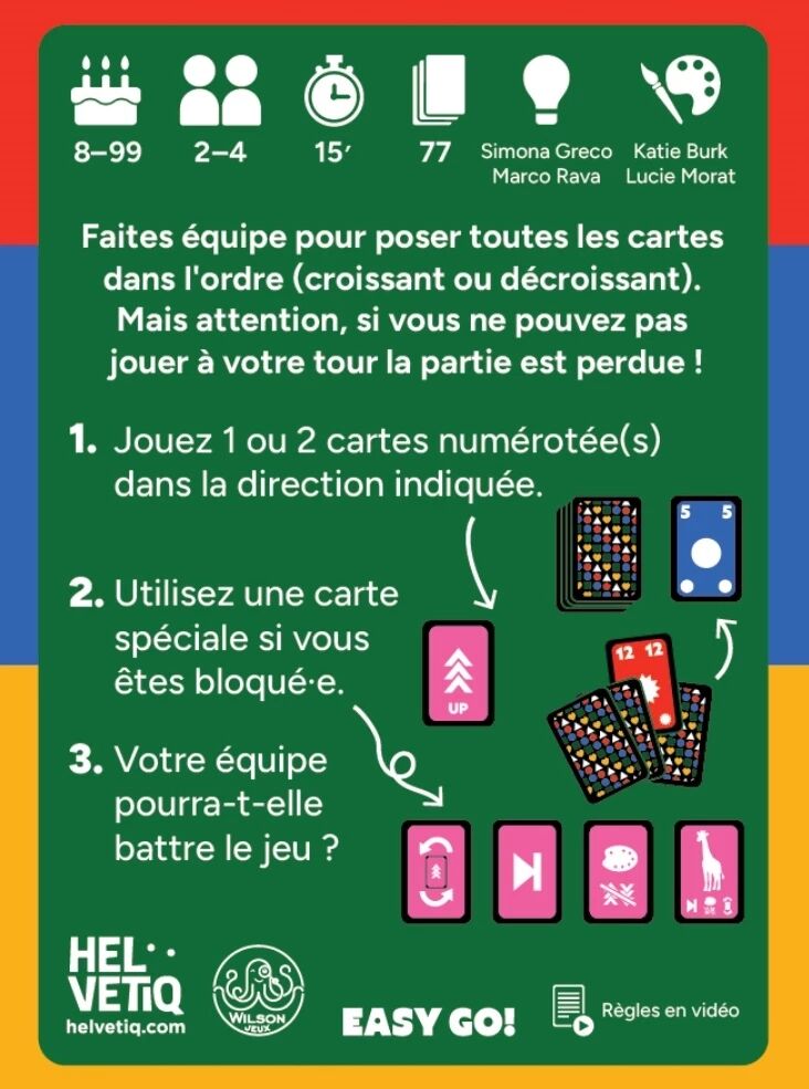 Les cartes s’accumulent au centre de la table. Plus haut ? Plus bas ? Un mauvais choix et tout s’arrête. Saurez-vous rester synchronisés jusqu’à la dernière carte ?