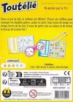 Dans Toutélié, classez les résultats des dés selon des schémas qui vous permettent de gagner des points. Le jeu comprend un bloc de feuilles de joueurs recto-verso, et chaque joueur a sa propre feuille, représentant le côté A ou B.