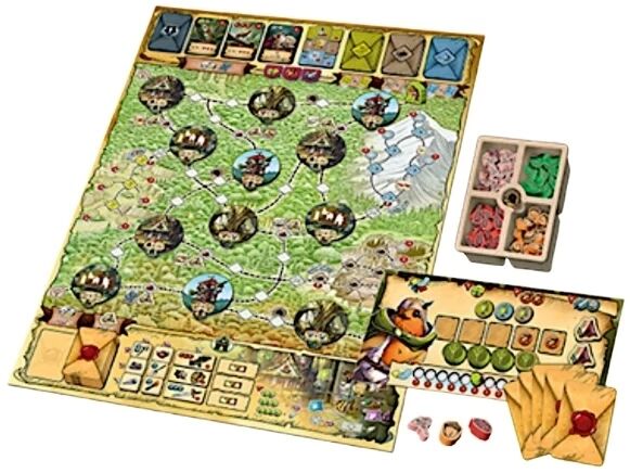1 plateau Ancienne Forêt, 12 tuiles Lieu recto-verso, 70 cartes Exploit, 20 cartes Rencontre, 36 cartes Aventure, 24 jetons Objet, 9 jetons Artefact, 64 jetons Ressource, 14 jetons Tente, 2 jetons Tunnel, 3 dés Combat, 4 plateaux Personnage, 4 figurines, jetons Action et Personnalité, 1 pion Premier joueur, 1 livret de règles
