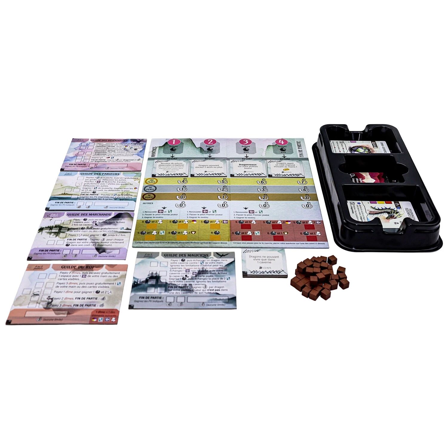 En plus de ces créatures inédites, L’Académie des Dragons enrichit l’expérience de Wyrmspan avec une grande variété de nouvelles cartes de dragons et cavernes, des tuiles Objectifs revisitées, et l’ajout des Guildes Draconiques qui diversifient les approches stratégiques. Un nouveau plateau Objectifs fait également son apparition : il offre désormais un choix de revenus alternatifs lorsque vous choisissez de passer pour le reste de la manche, ajoutant de la flexibilité et de la profondeur tactique à vos parties.