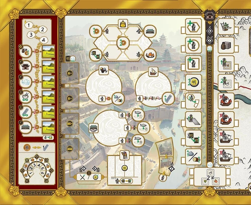 Dans le jeu Yinzi - Ming, vous incarnez une puissante famille marchande cherchant à prospérer au cœur d’un empire structuré autour des grandes cités, des ateliers et des routes commerciales reliant l’Asie à l’Europe. La richesse ne suffit pas : pour l’emporter, il faudra gérer habilement vos contremaîtres, vos ressources et votre présence politique, tout en composant avec un système économique exigeant et évolutif.